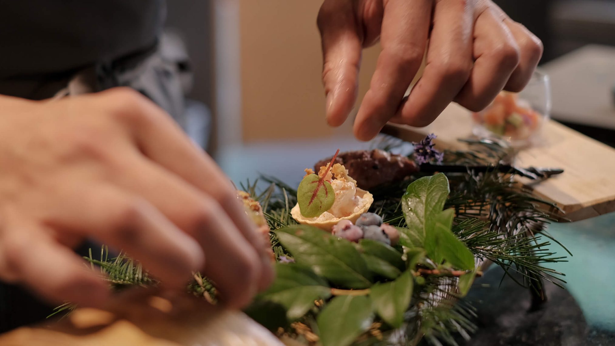 お客様とシェフが一緒に完成させる料理もございます。