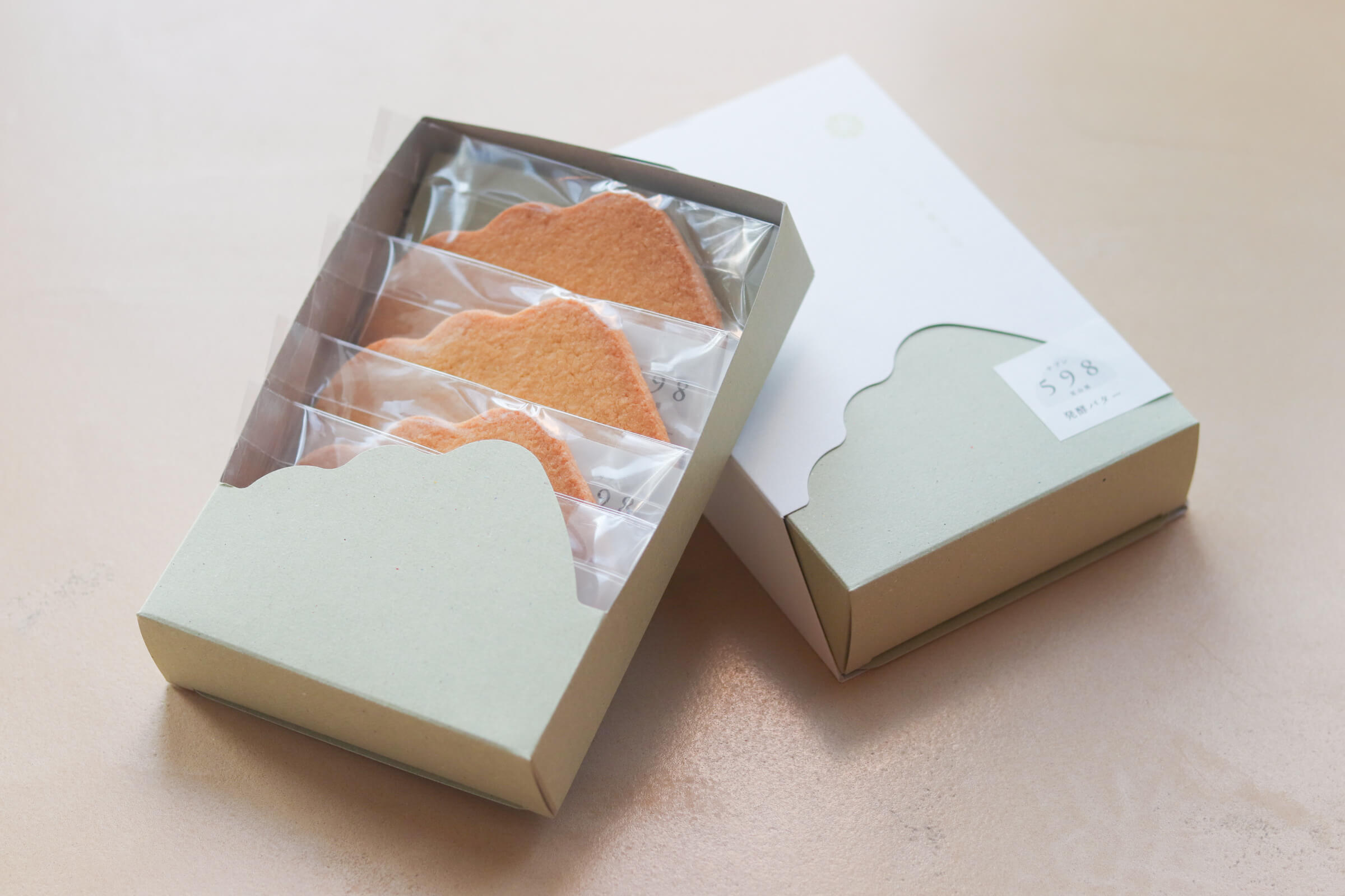 この朝日岳のやさしい山の形をした「サブレ598」はハレとケ洋菓子店の原点。